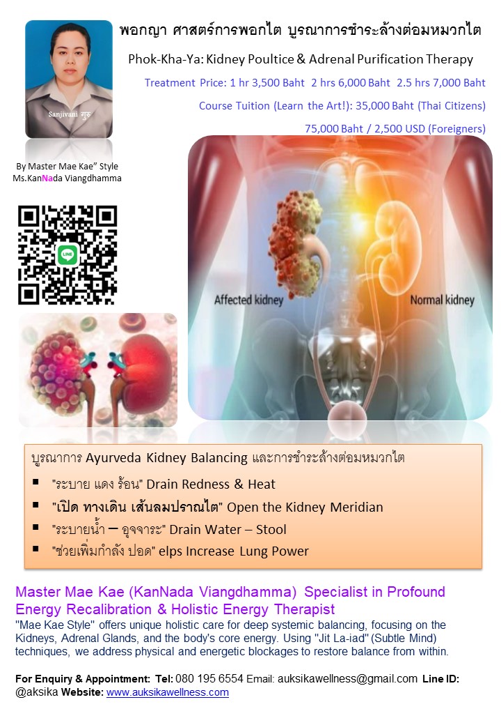 the spinal cord. -------------------------------------------------------------------------------- Event Details • Host: Master Mae Kae (KanNada Viangdhamma). • Date: January 17–18, 2026 (2569). • Time: Registration begins at 9:00. • Location: Sheva Om, Pak Kret. Pricing & Registration • Early Bird: $150 (Must register before December 15). • Regular Price: $299 (Normal rate). Contact to Reserve Your Spot Master Mae Kae 📞 080 1956554 Line ID: