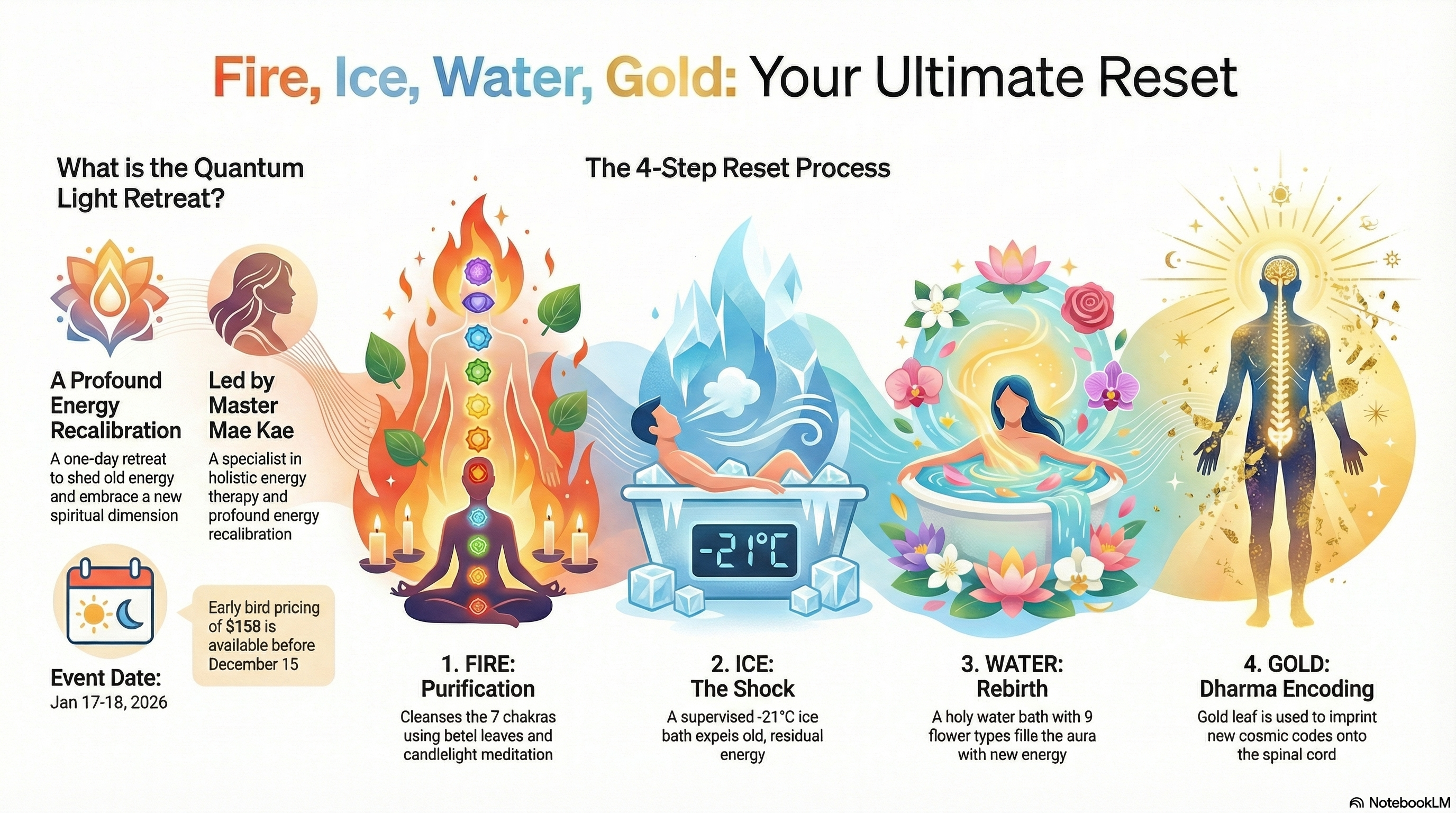 พิธีชำระล้างและลงรหัสธรรมจักรวาล Fire, Ice, Water, Gold: Your Ultimate Reset. Are you ready to shed accumulated negative energy carried